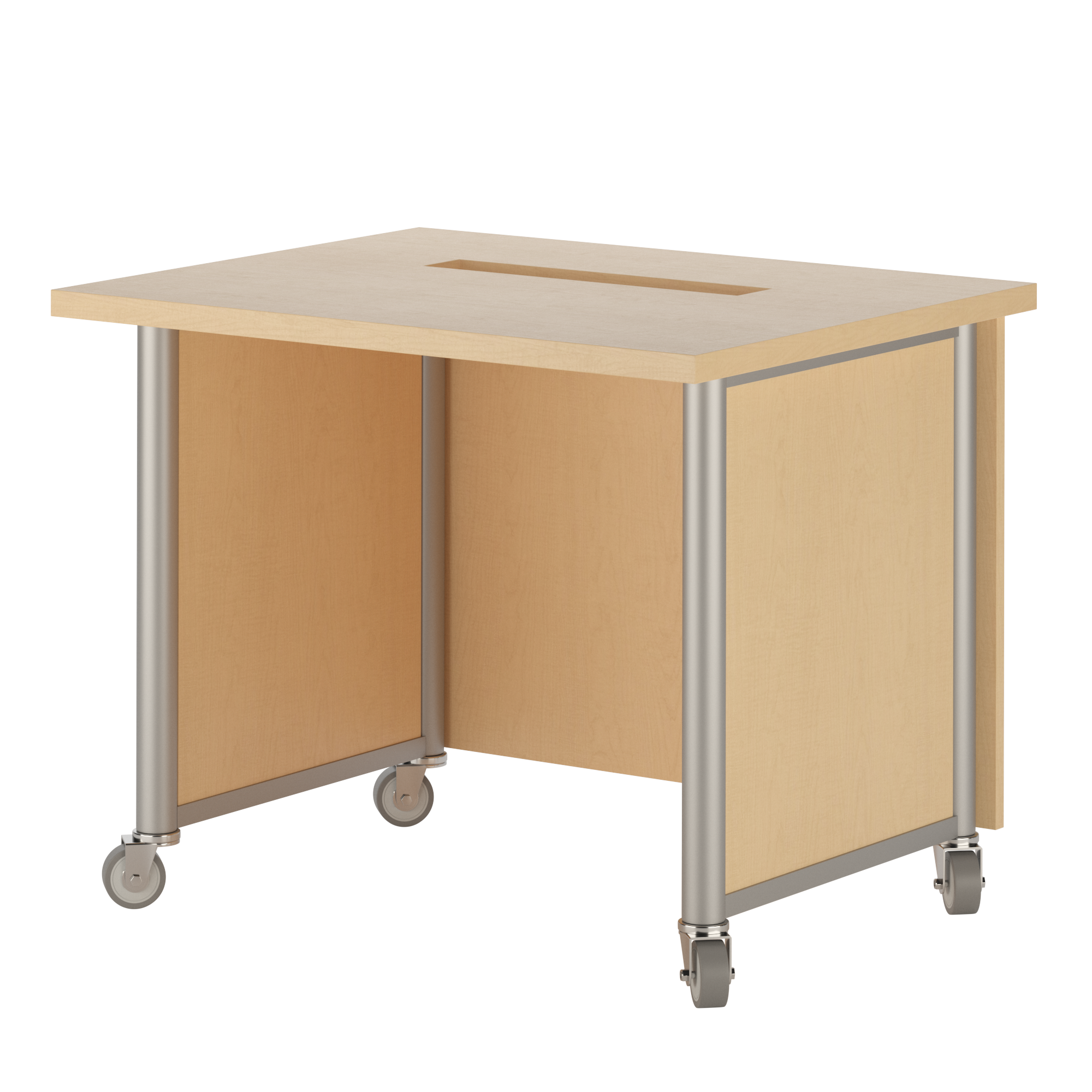 These desks are available in the Aura Series which features maple or oak veneer on all exposed surfaces with a High Pressure Laminate top surface.